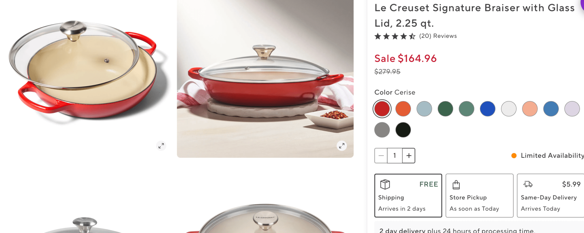$19.72 $39.95Global Osaka 6-Piece Knife Set $249.96 Sugg.$649.00Le Creuset Signature Braiser with Glass Lid, 2.25 qt.